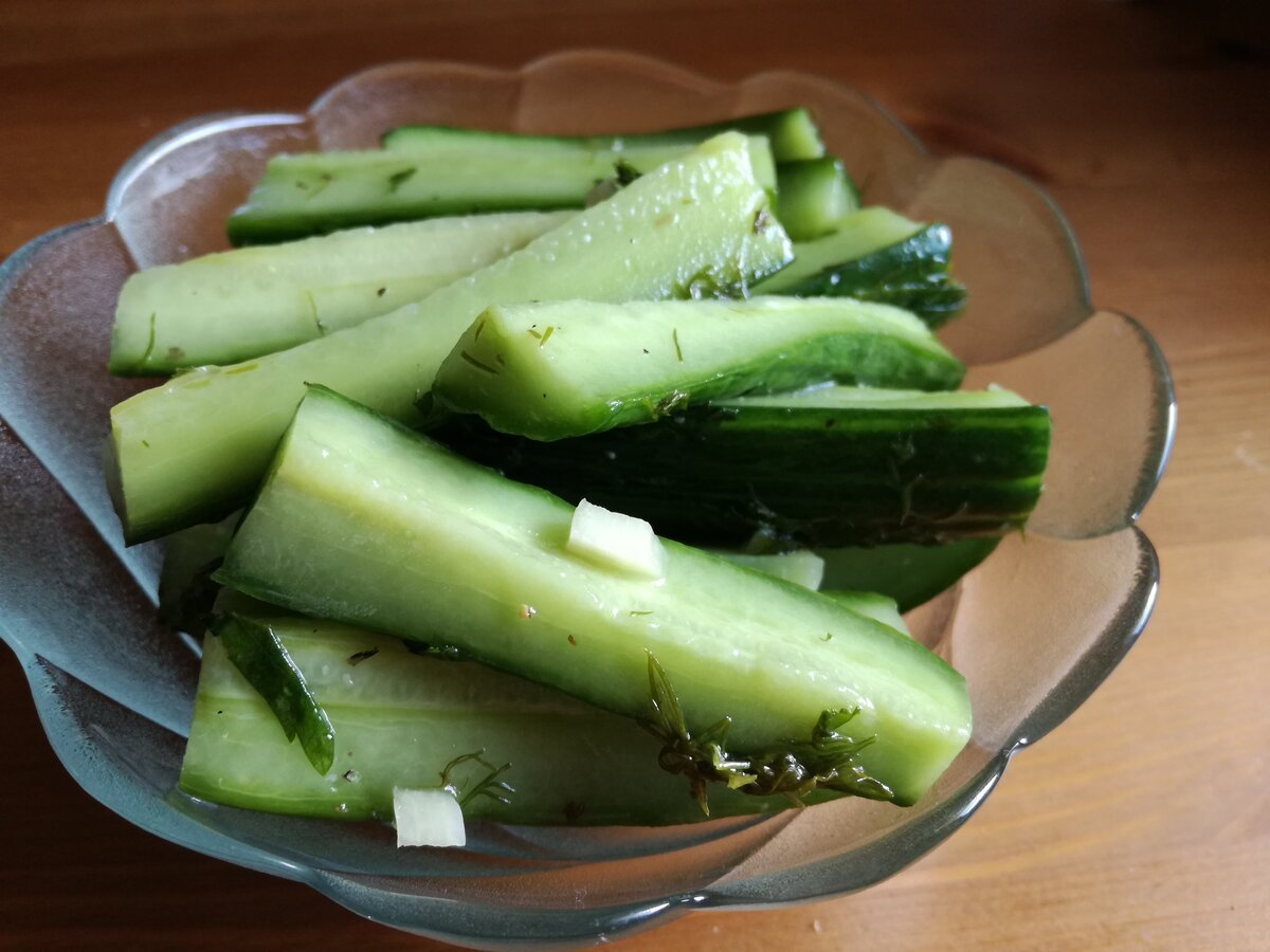Малосольные огурчики всегда выручат когда очень хочется солененького, а ждать невозможно! Это отличная закуска и под горячее, и под холодное, и под рюмочку чего-нибудь горячительного :) Делаем вечером, и на следующий день уже хрустим вкуснейшими огурчиками! Итак, поехали.. Нам понадобится: 2 длинных огурца (500-600г) укроп, петрушка щепотка сухого эстрагона 1 зубчик чеснока 1\2 ч.л. сахара 1 ст.л. лимонного сока 1 ч.л. оливкового масла 1 ч.л. крупной соли щепотка перца Способ приготовления: Зелень хорошенько промываем в миске с водой и ложкой уксуса. Мелко нарезаем вместе с чесноком и отправляем в стекляный контейнер. Туда же кладем все специи из списка, очень хорошо перемешиваем. Огурцы нарезаем ломтиками на 4 части и помещаем в контейнер к смеси со специями. Плотно закрываем контейнер и встряхиваем несколько минут, затем убираем в холодильник на ночь. Перед сервировкой достаем контейнер, встряхиваем еще раз и выкладываем наши огурчики в пиалку. Вкуснейшие хрустящие малосольные огурчи