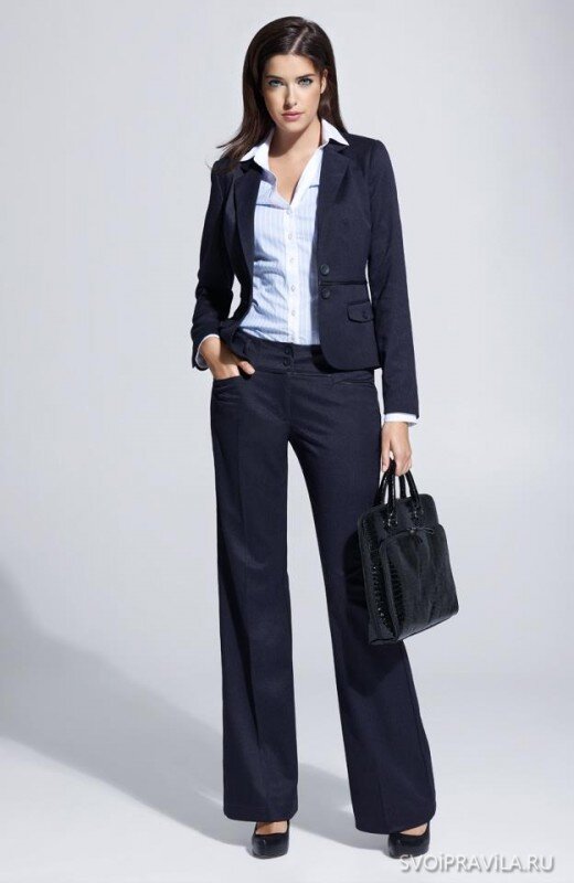 Деловой стиль в одежде предназначается в первую очередь для офиса и официальных мероприятий. Такой стиль характеризуется консервативностью при выборе цвета и ткани и формы покроя, строгостью и сдержанностью. Различают несколько вариантов делового стиля. Строго деловой стиль Строго деловой стиль является наиболее классическим вариантом, и не особо терпит каких-либо новомодных изменений. В большинстве своем, такой стиль соблюдают в качестве дресс-кода на работе. Чаще всего, это брючный костюм, светлая блуза/рубашка, юбка и пиджак темного цвета. Повседневный деловой стиль Такой вариант допускает некоторое разнообразие цвета, к примеру использование коричневого. Также повседневный вариант делового стиля более разнообразен по форме покроя одежды, не является строгим, а скорее аккуратным и женственным. Выбирая повседневный деловой стиль, вы можете смело надевать зеленую блузу и коричневые брюки. Условно-деловой стиль Наиболее простой и демократичный вариант делового стиля. В данном случа