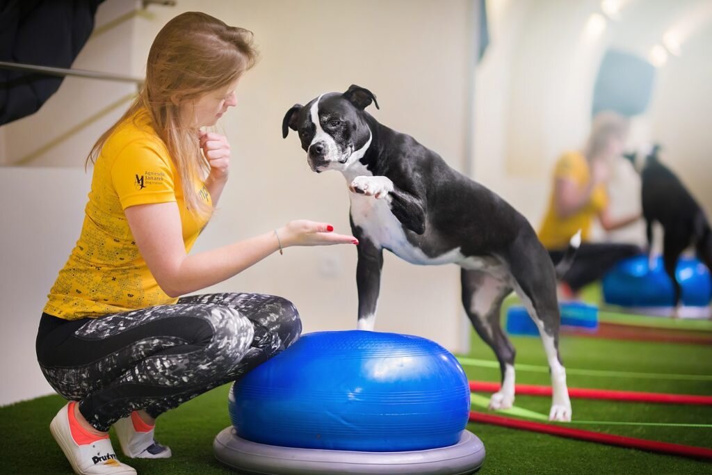 В последнее время тема физического развития собак стала очень популярной. Большинство владельцев слышало о том, что с помощью специальных упражнений собакам укрепляют мышцы, чтобы поддерживать здоровье. Поэтому многие хотят попробовать дог-фитнес со своими собаками. В интернете можно найти много упражнений, от простых до очень сложных, которые подходят только продвинутым собакам. Очень часто у меня спрашивают о том, с чего лучше начинать, и какие упражнения подойдут именно новичкам. Сначала нужно сходить к ветеринару и проверить, здорова ли ваша собака и готова ли к нагрузке, которую вы собираетесь ей дать. Если у вас есть возможность посетить ветеринара-физиотерапевта, то рекомендую проконсультироваться у него, чтобы убедиться, что состояние здоровья собаки позволяет ей выполнять упражнения. Итак, если ваша собака здорова и ветеринар разрешил вам заниматься дог-фитнесом, то можете приступать к занятиям. С чего же лучше начинать? Ниже вы найдете 6 базовых упражнений. Они подойдут практ
