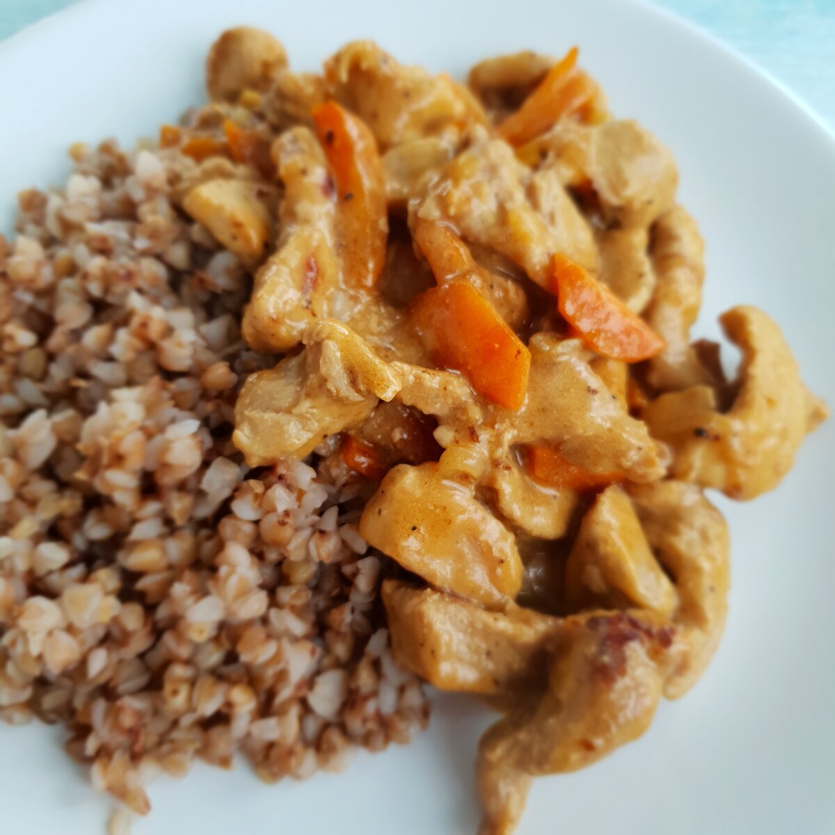 Бефстроганов (с французского Bœuf Stroganoff — говядина по-строгановски), хоть название и французское, но бефстроганов — это русское блюдо, которое получило широкое распространение в мире. Оно также может встретиться под названиями «Мясо по-строгановски», «Говядина по-строгановски», «Беф-Строганов» или «Беф а ля Строганов». Как это часто бывает с популярными блюдами, единой версии об истории возникновения бефстроганова не существует. Точно известно лишь, что связано оно с именем графа Строганова. Также не сохранилось и точного рецепта этого блюда, поэтому под названием «бефстроганов» вы можете найти множество вариаций приготовления, и каждый из них будет называться «классический», хотя какой же был действительно классический рецепт, к сожалению, не известно. Да простит меня граф Строганов, но сегодня по этоиу рецепту я готовила свинину. Ингредиенты: Свинина вырезка 1кг Морковь 1шт Лук репчатый 1шт Сметана 2 ст.л Мука 1ст.л Томатная паста 1 ч.л Соль/перец по вкусу Вода 200мл Приготов