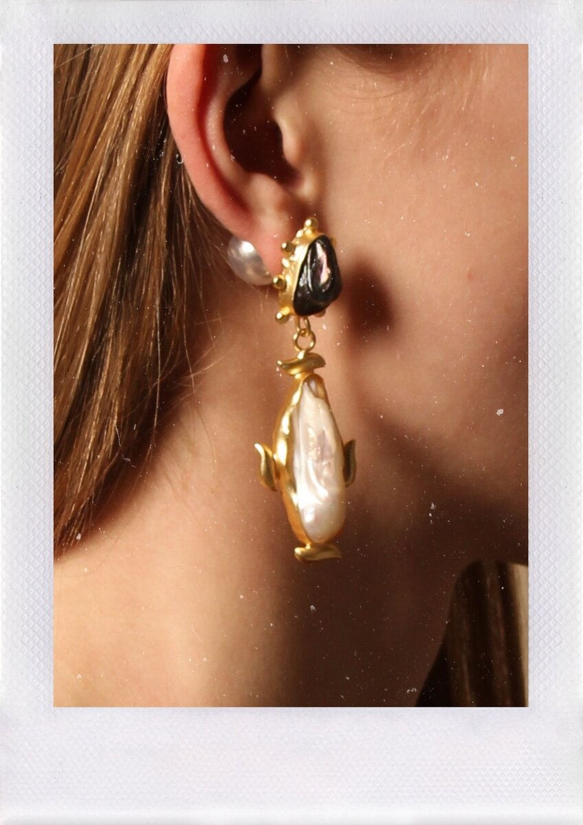 Обожаю жемчуг. Есть в нем что-то завораживающее и манящее. Смотрятся такие серьги очень элегантно, но...классическими жемчужными бусинами в ухе уже никого не удивить. На смену жемчужных гвоздикам теперь пришла барочная каплевидная форма, текучая и массивная. Вместо идеального шара жемчужины могут напоминать каплю, цилиндр, грушу. Кроме необычной формы жемчуг барокко часто отличается ребристым узором на поверхности, подобным тому, что оставляют морские волны на песке. Теперь жемчужные серьги это не робкое дополнение к образу, а яркий акцент. Farfetch На первый заказ на сайте есть скидка 10%. И не забывайте, что цена может меняться в зависимости от курсы. Также на некоторые товары плюсуется доставка, которая может доходит до 1500 рублей за одну позицию. Oscar de la Renta 1 Однозначно мои любимчики. Carven 1 Грозди жемчужин, когда смотришь на них слышится запах весны. Marni 1 2 (либо на оф.сайте Marni) Эти серьги из латуни с искусственным жемчугом, зато сделано в Италии)) Такие серьги