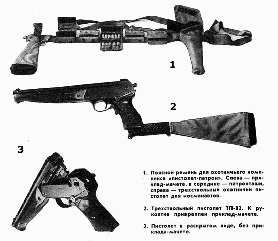 В 1982 году было спроектировано оружие, предназначенное для звездных экспедиций и в 1986 году принято в Космических войсках на вооружение. О факте его существование много лет нельзя даже было упоминать. Конструкция и его предназначение были засекречены. О милитаризации космоса конечно же речи не было. Основное предназначение арсенального исследования было исключительно в защитных целях, можно сказать для выживания. Предназначение данного оружия заключалось в защите экипажа спускаемого аппарата при его посадке в безлюдной местности. Алексей Леонов является инициатором появления оружия в экипировке космонавтов. Для этого он в 1979 году посетил оружейный завод в Туле. Там он поведал конструкторам о том, что у приземлившегося в Пермской области космического корабля «Восход-2» исчезла связь с группой поиска. Космонавтов целые сутки искали с помощью вертолетов. Данное время, проведенное среди глубоких сугробов и стужи, для космонавтов мог стать последним. В местных лесах полно диких зверей