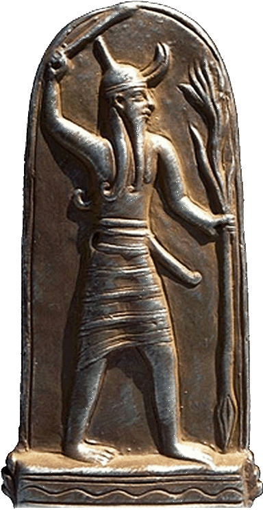 Характерная поза Баала и корона хеджет передают узнаваемый канонический образ древнеегипетского правителя — таковым изображали фараона с Додинастической эпохи: