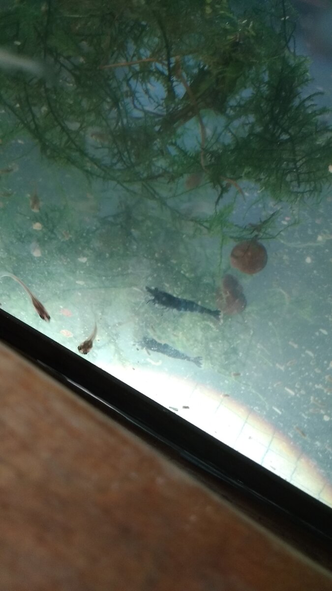 Запустил черных креветок в маленький аквариум к малькам гуппи