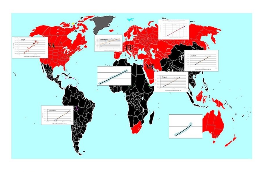 Вспомним, что мы говорили раньше про потребление энергии. Это нам поможет в дальнейшем понимании и исследовании мировых процессов. Припоминаете, что связь между производством электроэнергии и валовым национальным продуктом имеет линейный характер? Мировой валовой продукт хорошо коррелирует с ростом производства электроэнергии в мире. Такая же связь, превалирует и в корреляции ВВП отдельной страны и ее производства электроэнергии. Это проиллюстрировано на картинке в голове поста. Эти зависимости построены по данным Мирового Банка за примерно 20 летний срок с 1995 года. Вероятно, есть страны, где такая строгая корреляция между производством электроэнергии и ВВП не соблюдается. Это страны, в которых значительную часть составляет импорт или экспорт электроэнергии, да и товарное производство ориентировано в значительной степени на экспорт. Но даже в таких странах на длительных временных интервалах корреляция между ВВП и производством электричества просматривается достаточно четко.