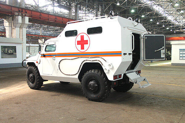 Военно-промышленная компания ООО «ВПК» объявила о расширении линейки гражданской продукции, а именно о выпуске медицинского автомобиля «Айболит» на базе тактического вездехода «Тигр». Зачем на «гражданке» бронированная скорая помощь, оборудованая баллистической защитой по классу 5 (защита от АК-74 и АКМ) мы ответить не можем. Однако на презентации машины журналистам на Арзамасском машиностроительном заводе «Айболит» был зачислен в линейку гражданской продукции, наряду с вездеходной спасательной машиной 59037, а также броневиком СБМ ВПК-233136 «Тигр» с правым рулем. От обычного «Тигра» санитарная машина отличается размерами. Она длиннее и выше. Габариты автомобиля: 5,5 х 2,4 х 2,7 метра. Полезный объем салона — бронированного салона 7,7 кубометра, что позволяет разместить четверых пострадавших, медицинское оборудование и обеспечить пространство для работы врачей. Полная масса «Айболита» 8,5 тонн. Под капотом дизель ЯМЗ-5347-10 мощностью 215 л.с. с механической коробкой. Запас хода 1