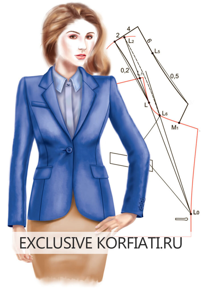 Выкройка пиджачного воротника на стойке используется при пошиве как мужских, так и женских пиджаков, жакетов и пальто. Форма лацкана, а также его размер могут быть разными и зависят от дизайнерского решения изделия. Также может меняться ширина воротника и форма его углов. В этом уроке мы покажем как построить выкройку пиджачного воротника с цельнокроеной и отрезной стойкой. Построение выкройки представленного на рисунке жакета вы найдете в разделе Выкройки пиджаков и жакетов. https://korfiati.ru/2010/11/pidzhachnyiy-vorotnik-na-stoyke/