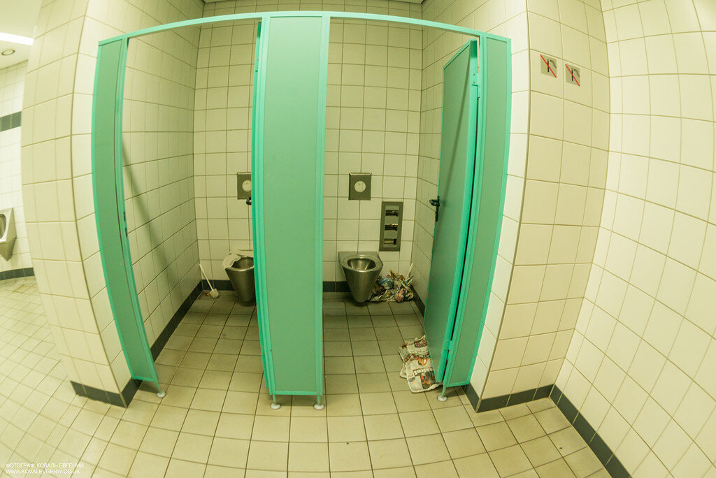 Я был крайне удивлён что в туалетах грязно и воняет. А ещё немцы любят делать унитаз железным, в самый раз зимой. Странный железный шкаф в стене — это умывальник, тут подаётся мыло и вода. Писсуары в мужском туалете занимает всю площадь комнаты. А где-то образует круг — рыцари круглого стола.