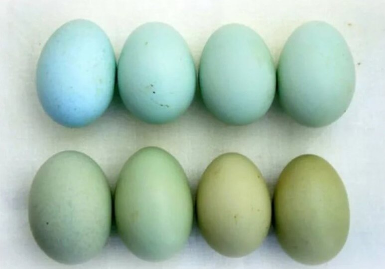 Мы с вами привыкли считать, что куриные яйца бывают двух цветов: белые и коричневые. Но существует в природе несколько редких пород кур, которые несут разноцветные яйца. Сейчас мы вам о них расскажем. Оливковый эггерс Курица данной породы - гибрид. Особенность ее организма в том, что у него два гена, благодаря которым несушка приносит яйца оливкового и бирюзово-зеленного оттенка. Кура славится не только крупными (по 65 граммов) разноцветными яйцами, но и сочным мясом. Но продуктивность породы невысокая - до 200 яиц в год. Араукана Куры необычны не только в том, что могут приносить голубые яйца, но и в том, что у них нет от рождения хвоста. Туловище кур компактной круглой формы. Гребешок похож на горох. Даже при комфортном содержании араукана, продуктивность не будет выше 180 яиц в год. Это слабый показатель для массового разведения. Но главная особенность все же в необычном окрасе скорлупы. Легбар Эти куры не вписываются не в одни куриные стандарты. Форма тела комичная - они словн