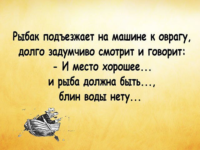 Курьезные случае на рыбалке не закончатся никогда. Ну, разве что люди вдруг совсем перестанут рыбачить,но это нереально. Правда же? Собрали новую порцию картинок, которые еще раз докажут, что рыбалка может быть безумно смешной. Рыболовы, не прекращайте любить свое хобби всей душой! А иначе откуда появятся новые истории о небывалых трофеях, новые видосы с уловами и море фоток с приколами. А бывает ты приехал на рыбалку и даже небо говорит тебе, что ты на своем месте! Когда рыбачишь на водоеме впервые и как бы не в курсе какие гиганты там плавают, а местные уже подготовились )) Будущее рыбалки? Хоть бы нет! Знакомо, не правда ли? И чем это мишка прикормил рыбу интересно? Малиновым вареньем? Медом? Рыба-пила = рыба-жена )) Креатив этих продавцов рыбы просто зашкаливает! "Я налим и я очень вкусный!!" и "Купи меня, не пожалеешь, ммм... вкусный я" Ставьте лайки, чтобы пост увидело больше людей. Всем крутых выходных и отличных уловов! ПОДПИСКА НА КАНАЛ