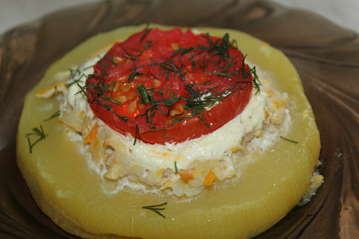 С вами канал Вкусно Дома! Осень, по-своему прекрасна! Природа разукрашена яркими красками и радует нас новым, свежим урожаем! Сегодня мы готовим вкуснейшие кабачки, с фаршем, обжаренной морковью, сверху помидоры, сыр. Всё это запекаем в духовке. Блюдо получается очень нежное, сочное, вкусное и полезное! Очень рекомендуем попробовать так приготовить! Ингредиенты Приготовление Шаг 1 - Готовим начинку Морковь трём на крупной тёрке, лук режим кубиками. Всё обжариваем на сковороде с подсолнечным маслом + щепотка соли. Рис насыпаем в кастрюлю, промываем, заливаем вновь чистой водой и доводим до кипения. Рис чуть распарится. Промываем в холодной воде, сливаем воду. Филе грудки пропускаем через мясорубку + 1 зубчик чеснока. В миску с фаршем добавляем: рис, морковь с луком, 1 яйцо, соль, перец или мускатный орех, чеснок всё хорошо перемешиваем. Начинка готова. Шаг 2 Кабачок очищаем от кожуры, убираем сердцевину и режим кольцами, шириной 2 см. В широкую кастрюлю кладём кольца кабачков, зали