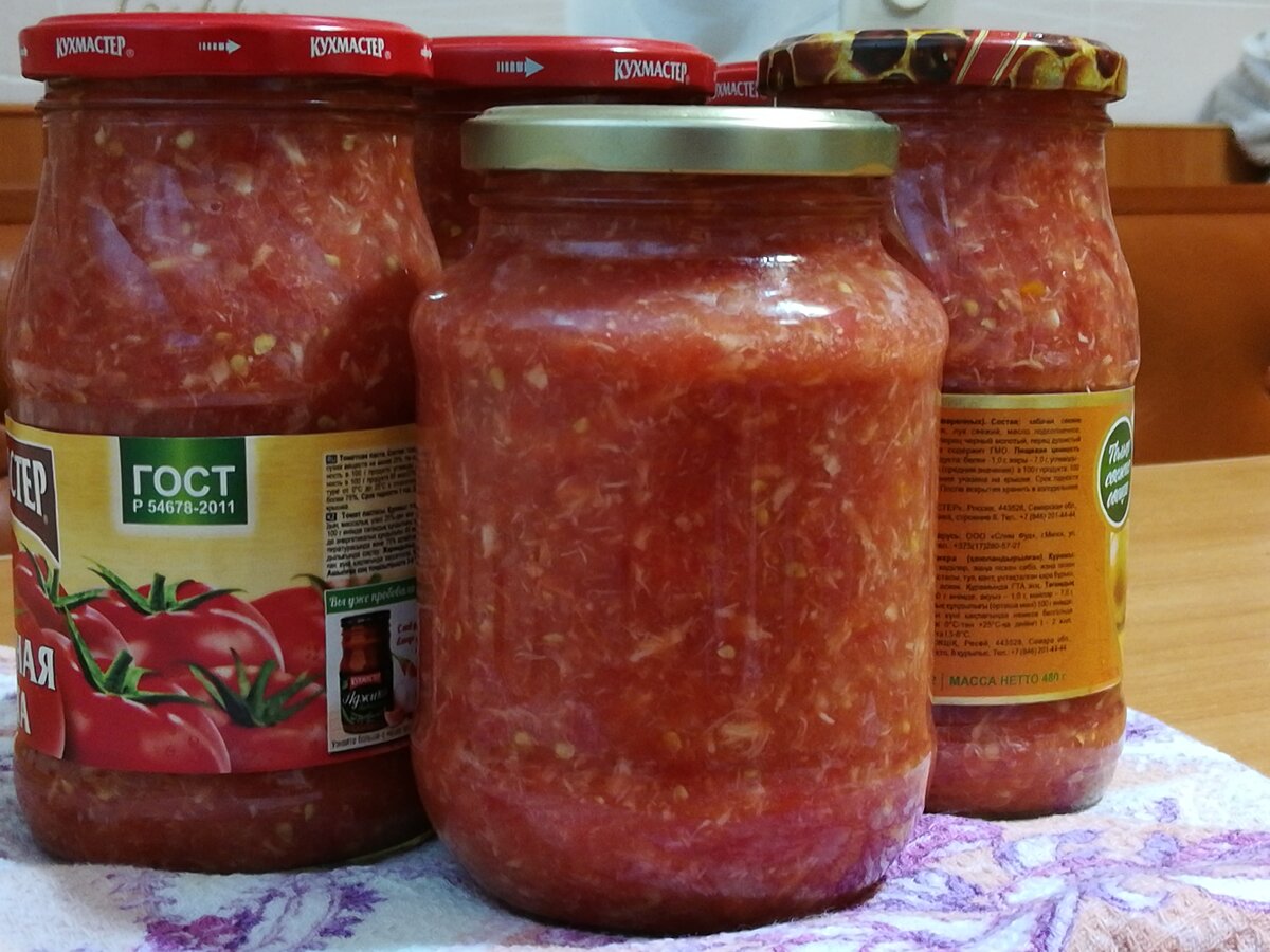Это скорее не рецепт приготовления хреновины... Так как здесь всё как обычно... А метод обработки банок и крышек для закатывания этой хреновины. Уже наверное лет 10, так готовлю, и никогда банки не вздуваются, хреновина не прокисает и всегда остается очень вкусной и ядреной!!! Для приготовления хреновины я беру такой соотношение продуктов: 2,5 кг свежих помидоров, 300 г очищенных зубчиков чеснока и 300 г очищенного корня хрена. Всё это прокручиваю через мясорубку, порядок прокручивания не имеет никакого значения!!! Я прокручиваю всё вместе в одну миску, потом на такой соотношение кладу 3 ст. л. соли без горки, и большую столовую ложку сахара. Всё... Никакого уксуса, никакого масла! И ещё также через мясорубку прокручиваю сюда же 2 стручка жгучего перца. Перец конечно это на вкус и на любителя, просто у меня муж очень уж любит ядреную и острую хреновину! Хреновина уже готова... Теперь расскажу как я подготавливаю банки и крышки для хранения этой вкуснятины!!! Банки стерилизую на пару,