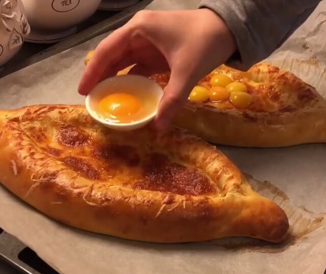 Привет, дорогие друзья! Сегодня хочу рассказать вам как приготовить хачапури по-аджарски! Получается очень вкусно! А сделать все крайне просто! Вот что нам будет нужно: 1. Молоко комнатной температуры 130 миллилитров или пол стакана. 2. Вода комнатной температуры или пол стакана. 3. Половинка стол.ложечки сахара. 4. Чайная ложка соли. 5. Одно куриное яйцо. 6. Столовая ложечка растительного маслица. 7. Стол.ложечка дрожжей. 8. Пол килограмма муки. 9. Сыр 250 грамм. 10. Пара яиц для начинки. Дорогие друзья, ИСКРЕННЕ прошу Вас помочь мне, начинающему автору! Прошу Вас поставить мне лайк и подписаться! По возможности написать комментарий. Вам не сложно, а мне это очень поможет! Заранее большущее Вам спасибо! Способ приготовления: 1. Смешиваем в тазике молоко, водичку, яйцо, соль, сахарок, дрожжи. 2. Замешиваем тесто. 3. Оставляем постоять в тепленьком месте на часик. 4. Затем тонким слоем раскидываем пластину, формируем нечто подобное лодочке. 5. Наши лодки смазываем желтком, посыпаем