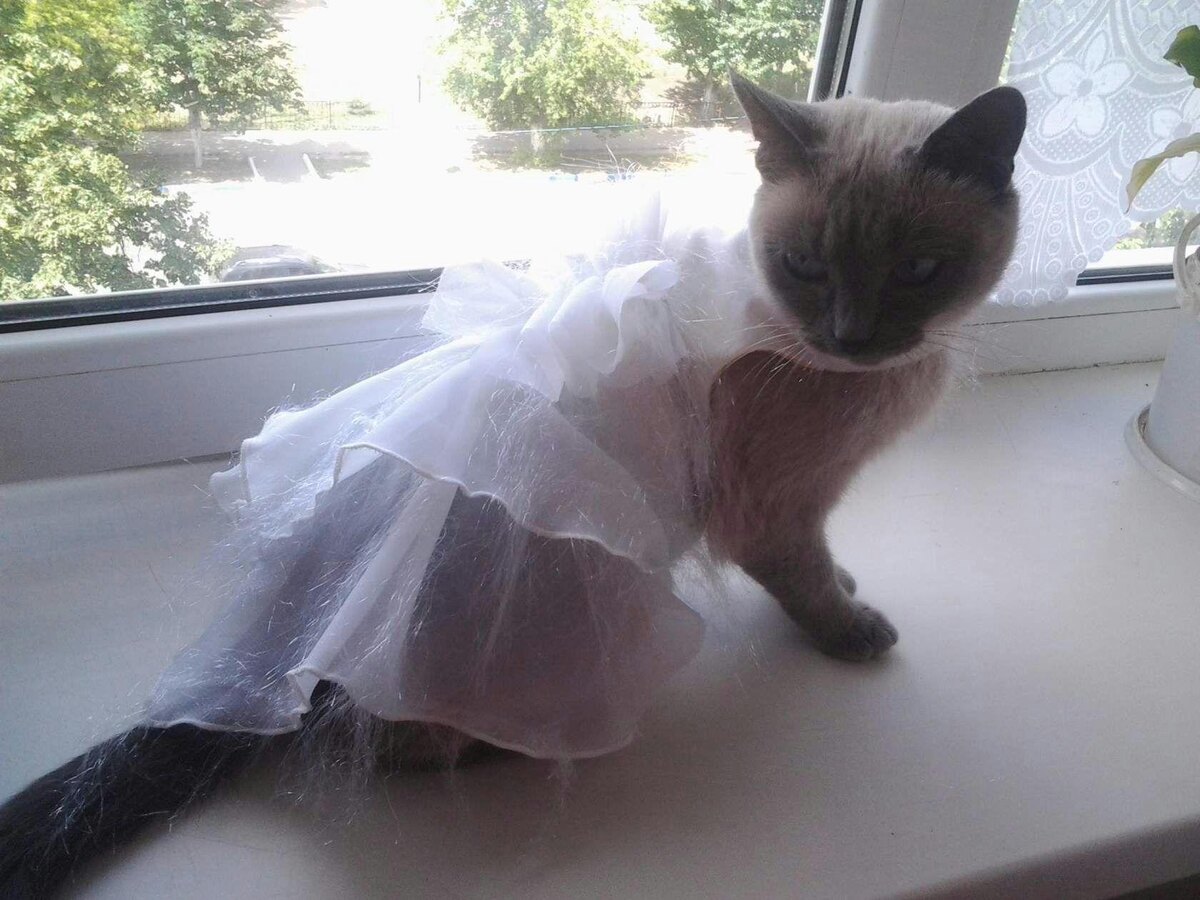 Начался второй выходной день, за окном лил дождь. Мы всей семьёй смотрели телевизор, сначала какой то фильм, а к обеду начался футбол, и "мама" ушла от нас на кухню готовить. Я в поддержку "маме"- не женское дело смотреть футболы, ушла с ней. Она что то долго чистила и стругала, вообщем мне и с ней стало скучно. Я разлеглась на подоконнике, и под её "мамино" мелькание перед моими глазами задремала, шум дождя так и клонил в сон. Мне снились жирные мои птички из мультика. А когда я проснулась "мама" уже сидела строчила на машинке. Через некоторое время она позвала меня. Ой, я лениво потянулась,ещё подумала- может она сама подойдёт?, "мама " позвала снова -нет, вот надо встать и идти! И что я увидела,вот это красотища! "Мама" взяла меня на руки и принялась наряжать. Как только будет солнечный денёк, мы отправимся на прогулку - сообщила она мне. А так как прогулка планируется не сегодня, и платьице мне так идёт, меня посадили на подоконник и устроили фотосессию, как будто это так важно. К