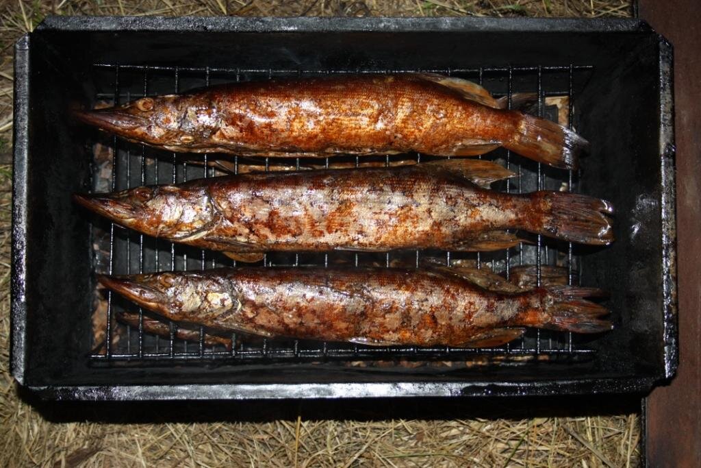 Щуку нужно почистить — удалить внутренности и жабры, чешую оставляем, так как она будет сохранять форму щуки во время копчения. Смешиваем специи и соль, хорошо обтираем этой смесью щуку, как изнутри, так и снаружи. Для засолки щуки подойдут любые ароматные травы и специи. Оставляем щуку мариноваться от 3 до 12 часов. После маринования щуку нужно хорошо промыть под проточной водой, попробовать мясо на соль, если рыба пересолена, то ее нужно замочить в холодной воде еще на час. Подготовленную рыбу для копчения обсушиваем с помощью салфеток или тряпок.