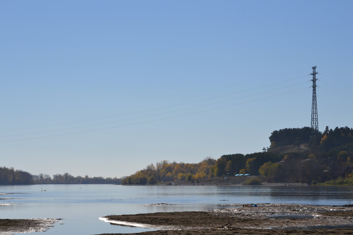 За этим столбом стоит спорткомплекс "Заря" Дальше или ниже по течению промышленный район, где стоят все заводы ВПК их было больше пяти. Из них работает три. Жилой комплекс квартала АБ. Микрорайон АБ. Вдоль берега стоит дом Ученых. Выстроен специально для научных работников АНИИХТа. В этих домах повышенная площадь для жилья и были кабинеты для работы дома. На квартале АБ остался кусочек леса. В нем еще до революции была дача, кого неизвестно. Теперь на этом месте частное строение посреди леса. Через весь город по берегу реки стоят гаража для лодок. В Советское время были отдельные лодочные станции. Лодок плавало по Бии не меньше чем автомобилей на дорогах. Сейчас их большая редкость. Частные жилые строения. Бийский грузовой порт. Работает в основном с гравием и песком, который доставляют баржами с Катуни. Понтонный мост через Бию. За мостом жилой комплекс "Зеленый Клин". Видно сколько машин едет по мосту и перед мостом очередь 300 метров. Воскресенье, все возвращаются. Стоимость проезд