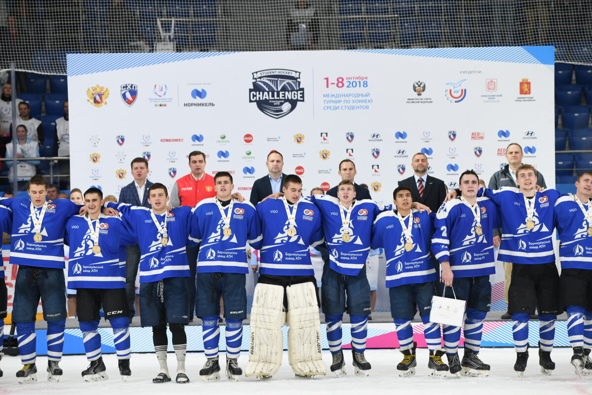 7 октября в Красноярске был завершен Международный студенческий хоккейный турнир Student Hockey Challenge. Он стал уже четвертым по счету тестовым мероприятием Зимней универсиады-2019. И на этот раз победителем Кубка международного турнира стала барнаульская студенческая хоккейная команда "Динамо-Алтай". Наши "динамовцы" играли в финальном матче с командой UMB из Словакии. Первый тайм прошел со счетом 1:1. Второй - 2:3 в пользу словаков. И на последних минутах матча игроки Иван Переверзев и Владислав Повельев отправили две шайбы в ворота соперников. Так, счет матча – 4:3 в пользу «Динамо-Алтай». И барнаульцы – обладатели победного Кубка. «Мне хочется поблагодарить за хоккей, за финал, в ходе которого нам удалось переломить ход игры. Мы были рады выступить на соревнованиях такого уровня», - рассказал в ходе пресс-конференции, прошедшей после игры, тренер «Динамо-Алтай» Александр Усачев. Отметим также, что в команде барнаульцев лучшим игроком турнира признан Максим Чирков. Лучший голкипе