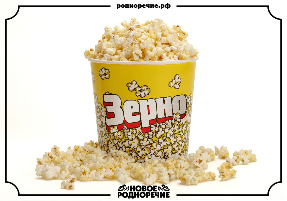 Был со мной один случай. Ехал я с семьёй в кино. С нами был мой племянник, Саша, 14 лет. Он, как и все современные подростки слушает американские песни, играет в американские игры, в учёбе у него на изучение английского языка отведено больше времени чем на изучение русского и в остальном все как и у других подростков. Помню тогда мы торопились, чтобы не опоздать на просмотр и пока ехали, обсуждали как бы нам побыстрее добраться, что нужно купить по пути и как бы чего не забыть. Так как меня сильно раздражают всякие словечки, вроде "хайп", "вау", "фейк" и прочие "мониторинги" с "истеблишментами", то я в своей речи подобные слова не использую, ну и вообще стараюсь заменять некоторые, даже привычные иностранные слова на русские, насколько могу. Так вот, я тогда не знал чем заменить слово "попкорн" и пришлось налету ляпнуть что-то вроде Ты сдаешь одежду, мы покупаем зерно и бегом на фильм! Любопытно, что племянник посчитал, что слово "зерно", это "продвинутый" способ говорить "попкорн". Я