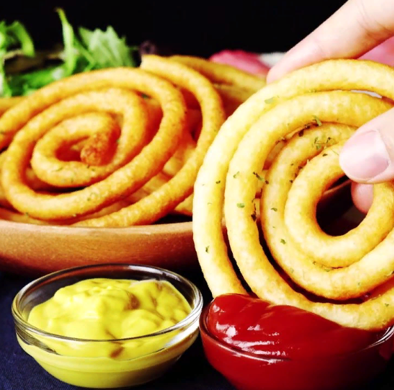 Приветствую вас дорогие любители кулинарии, сегодня я хочу поделиться с вами необычным рецептом картофельных спиралей. Картофель очищаем и отвариваем, затем давим его в пюре, и как слегка остынет добавим в него куриные яйца, после чего перемешаем. Мне нравятся итальянские травы поэтому добавлю 2 ч.л. именно этих специй. После чего натираем туда наш любимый сыр, я предпочитаю чеддер, солим и хорошенько перемешаем. В конце я добавил мелко рубленный острый перец, но многие его не любят так что по желанию. Теперь всю получившуюся массу мы перекладываем в кондитерский мешок. Разогреваем масло во фритюре слоем 2-3 см и ждем пока оно нагреется, после чего прям на масле формируем те самые спиральки и ждем пока они подзолотятся. После чего можем подавать к столу. Прекрасно сочетаются с любыми соусами, и являются прекрасной закуской.Приятного аппетита))