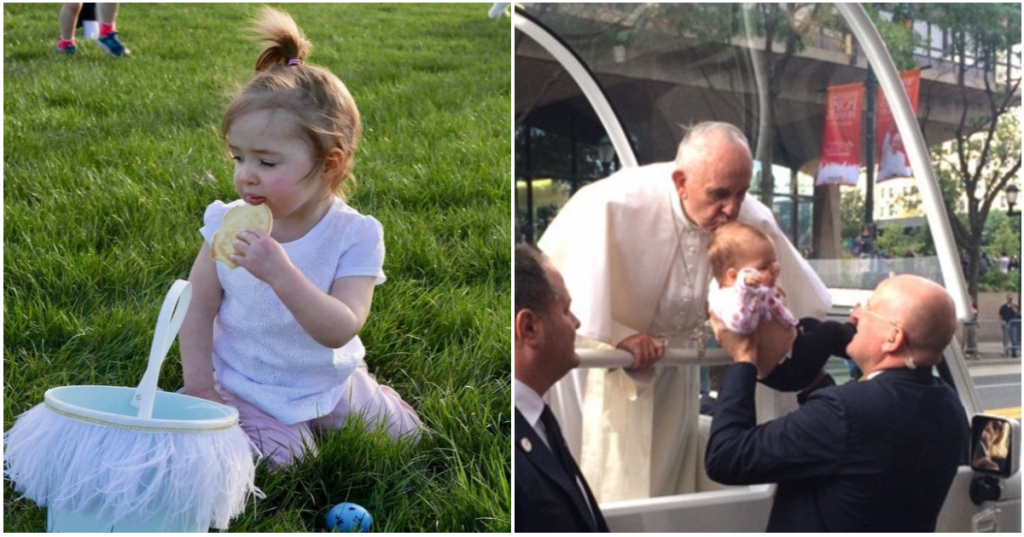 Снимок запечатлевший как Папа Римский целует в голову маленькую девочку во время поездки в США мгновенно распространился в интернете по всему миру. Малышку для встречи с Папой Франциском доставили родители, жизнь которых превратилась в ад, когда они узнали о раковой опухоли на мозге дочери. Девочка мужественно боролась с недугом несмотря на прогнозы специалистов. Бедным родственником советовали готовиться к похоронам, но они предпочитали молиться, а не думать о страшном исходе. Поцелуй перевернувший жизнь американской семьи состоялся в сентябре 2015 года. Когда Джианна была четырёх недельным младенцем врачи проводившие стандартную проверку слуха диагностировали у малышки рак мозгового ствола. Безутешным родным предложили поместить девочку в хоспис, но не желавшие смириться родители начали обследования в лучших клиниках Америки. Семья исповедует католическую религию и узнав о приезде Папы не раздумывая отправились на Маркет-стрит, где проезжал его кортеж. По стечению невероятных
