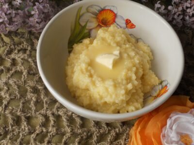 Продукты: 1 стакан пшенки, 25–30 г сливочного масла, 400 мл молока, 2 стол. ложки сахара (можно заменить медом), 400 мл воды, соль на кончике ножа.