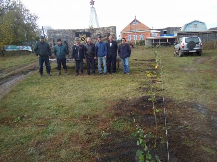 Работники дома культуры и сотрудники Кряш-Сердинской школы в деревне Колкомерка около памятника посадили 47 кустарников по числу погибших односельчан в ВОВ.