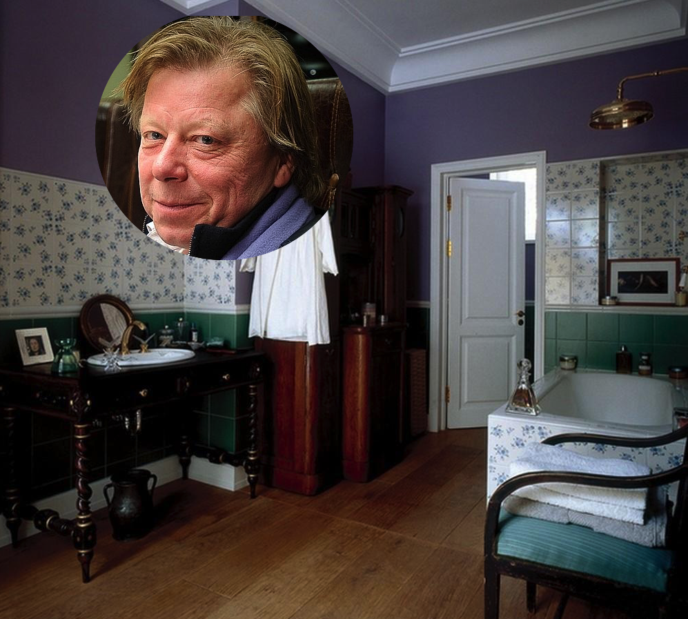 Василий Бычков, директор Центрального Дома Художников (ЦДХ), благодаря которому столица приобретает всё большее значение в мире искусства, свой загородный дом сделал в стиле "русской усадьбы". В доме есть и детали от современных художников, например, роспись над чёрной лестницей, картины. Мебель в основном начала 19 века. Ванная комната не отличается по стилю от основного интерьера в доме. Оборудование современное, но для поддержания целостности дизайна используется в бронзовом цвете (bronze, antique). Повторите дизайн ванной комнаты Василия Бычкова вместе с магазином "Киоск сантехники", подберите всё по своим размерам. Ванна из литого мрамора Эстет Лаура 170x70 см. Душевая система Bennberg 561222 bronze Комплект мебели Timo Vilma Смеситель для умывальника Timo Nelson Antique 1921F Ещё больше звёздных домов здесь: