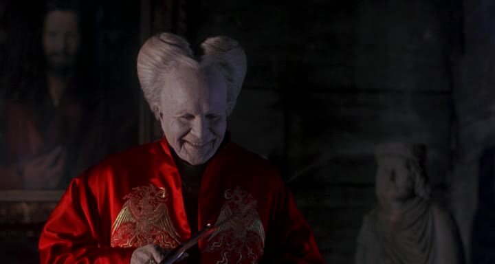 Культовый фильм ужасов про легендарного графа Дракулу,Влада Цепеша,персонажа вполне исторического... Фильм сам по себе зародил целую субкультуру,посвященную теме вампиров,всегда влекшей человеческое внимание. Можно верить в вампиров,можно не верить,но от этого история трансильванского князя не становится менее леденящей. Валашский князь прославился своей жестокостью и кровожадностью,садизмом,и этим прочно вписал себя в историю. Режиссер:Фрэнсис Форд Коппола.В ролях:Гэри Олдмэн,Вайнона Райдер,Моника Беллуччи,Киану Ривз,Энтони Хопкинс. Год выпуска:1992. Фильм получил 8 Оскаров. В далекие времена Влад Дракула славился воинским умением и любил свою красавицу-жену.Но в результате стечения обстоятельств его вера в Бога пошатнулась,и он отрекся от него,и,обратившись к темным силам,стал вампиром. Прошло много лет.Юрист Джонатан едет в Трансильванию к некоему графу Дракуле,чтобы заключить сделку по продаже земель в Англии. У него есть невеста Мина,которая остается ждать его дома. В ней граф Д