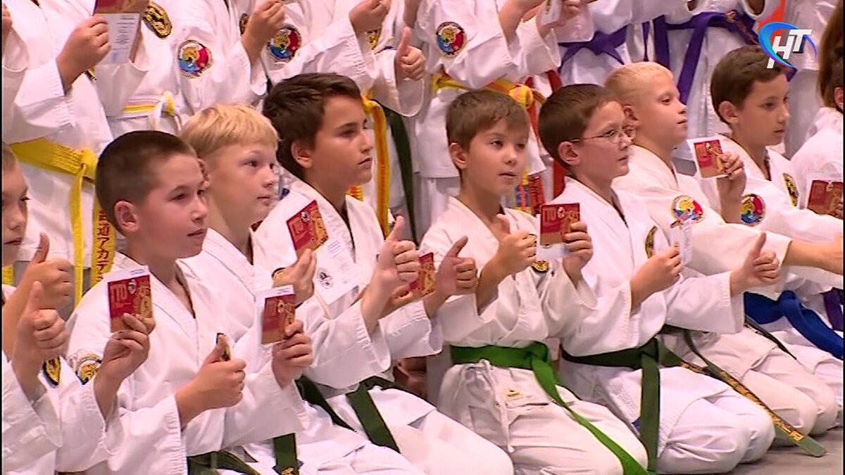 Вроде бы обычная тренировка школы каратэ: кимоно, пояса разных цветов, босые ноги. Только в этот раз после занятий ребята не бегут по раздевалкам, а выстраиваются на церемонию. «Сегодня мы вручаем знаки спортсменам, которые занимаются всестилевым карате. Абсолютно все ребята успешно справились с выполнением нормативов. Это закономерно. Так как они регулярно занимаются спортом, а ведь главная задача комплекса ГТО – это регулярные занятия, подготовка, для того чтобы спорт вошёл в повседневную жизнь каждого человека», – отметила Елена Кирилова, официальный посол ГТО Новгородской области. Все знаки от пятой до пятой ступени были вручены 82 спортсменам. Сами нормативы ребята сдавали ещё летом на базе стадиона «Волна» и школы №18. И теперь золотые, серебряные и бронзовые награды нашли своих героев. Сегодня в Новгородской области каждый 10-й житель региона присоединился к движению ГТО. Половина из тех, кто проходит испытания, выполняют нормативы на знаки отличия.