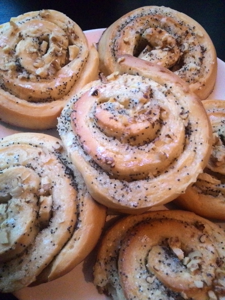 Уважаемые читатели, хочу поделиться простым рецептом дрожжевых булочек. Приготовить довольно просто, никаких особых ингредиентов не надо. Ингредиенты: Итак, начнем: В теплое молоко добавляем 1-2 яйца (в зависимости от того, какая категория), растопленный маргарин, соль, сахар. Просеиваем 3 стакана муки высшего сорта, а далее 0,5 стакана по мере необходимости. Высыпаем дрожжи. Вымешиваем тесто, мука у нас у всех разная, поэтому 3 стакана идет точно, , тесто не должно быть излишне крутым. Оставляем на часок, полтора. Должно подняться хотя бы разок! Раскатываем лист толщиной 5-8 мм, смазываем растопленным маслом или маргарином, посыпаем сахаром и корицей, можно добавить промытый и размоченный изюм. Сворачиваем в рулет, нарезаем кусочками по 3-4 см. Выкладываем на смазанный маслом/маргарином противень и на расстойку - минут 30 - 40. Печем от 10 до 20 минут при температуре 180 -200 градусов - тут все зависит от Вашей духовки. Пока булочки пекутся в духовке делаем вкусную обмазку: 1/2