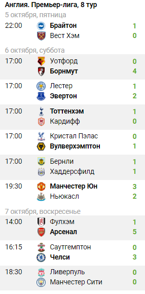 АПЛ 9тур, турнирная таблица,