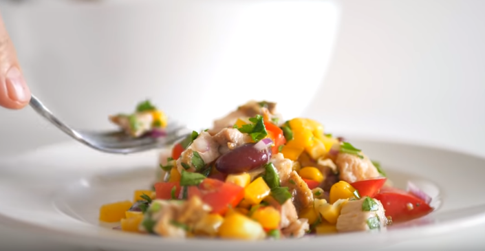 Такой салатик будет очень выгодно выделяться на столе! В состав этого блюда входит очень много овощей, а также фасоль и мясо - а это означает, что салат будет еще и супер питательным! Вкус салата также не разочарует хозяек, попробуйте и вам обязательно понадобится вторая порция этого блюда! Салат "Радуга" Ингредиенты: Заправка: Пиготовление Помидоры режем кубиком и складываем в глубокую миску. Болгарский перец моем и очищаем от семян, режем мелким кубиком. Кладем к помидорам. Лук очищаем от кожуры и также режем мелким кубиком. Отправляем в миску к уже порезанным овощам. Веточку петрушки мелко рубим и кладем в миску к овощам. Жаренное мясо (лучше если это сделано заранее) режем кубиком и кладем в миску с салатом. Также в миску к остальным ингредиентам кладем отварную фасоль и кукурузу консервированную. Делаем заправку. В отдельной емкости смешиваем: мед, масло растительное, соль, перец, измельченный чеснок, горчицу и лимонный сок. Заправляем салат, перемешиваем и подаем к столу! Все