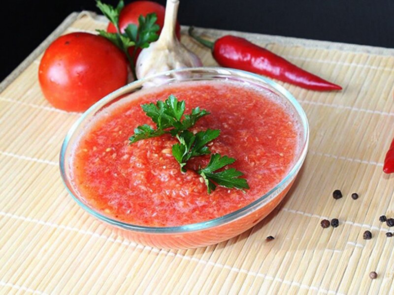 Несмотря на то, что хрен не сохранят долгое время своих полезных качеств, в этом рецепте они компенсируются наличием томатов и чеснока. Ингредиенты: Способ приготовления: Помидоры, чеснок, перец и корешки хрена помыть и высушить. Из перца удалить семена. Хрен порезать на небольшие кусочки, чтобы было удобнее измельчить их в мясорубке. Пропустить овощи через мясорубку. Добавить к овощам соль, сахар и лимонный сок, всё тщательно перемешать и дать настояться в течении 20 минут, чтобы сахар и соль растворились, затем ещё раз всё перемешать. В это время простерилизовать банки, лучше использовать небольшие емкости, чтобы открытый соус не выдыхался. Разлить соус по банкам, тщательно закрыть крышками. Хранить в прохладном месте. ПРИЯТНОГО АППЕТИТА! Если Вам понравился рецепт, ставьте лайк и подписывайтесь на мой канал в Яндекс.Дзен! А также в комментариях пишите, те продукты с которыми Вы бы хотели видеть рецепты.