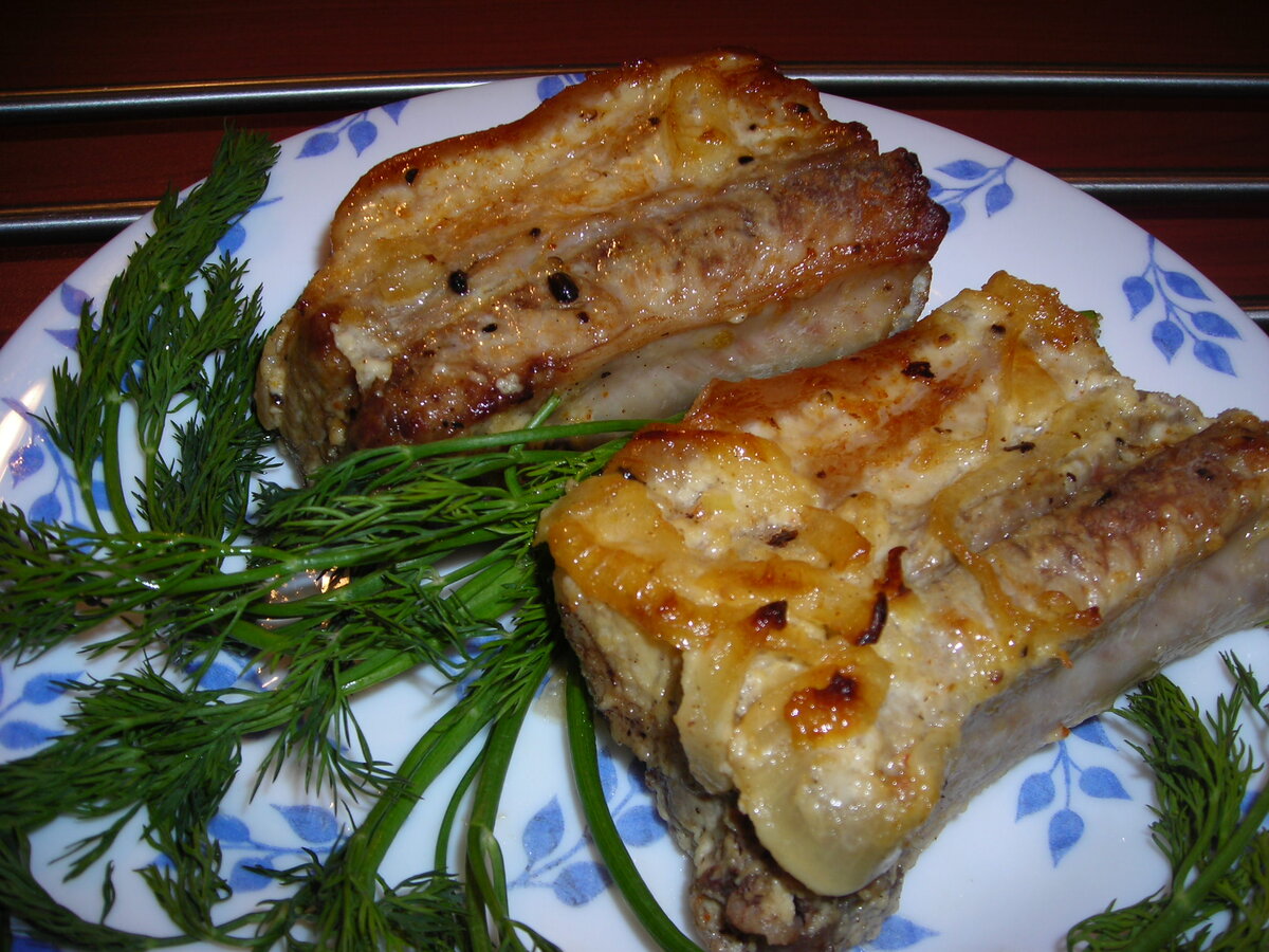 Любимое многими мясное блюдо, становиться ещё вкуснее, если добавить в него хрен. Ингредиенты: Способ приготовления: Свиные ребрышки можно немного отбить. Лук почистить и нарезать тонкими кольцами и смешать с ребрышками. Добавить соль, специи и перец и хрен, оставить мариноваться на один час. Лучше всего использовать молотый свежий хрен, но если его нет, то подойдет и готовая специя. Разогреть духовку до 220 градусов. Выложить мясо и лук на слегка смазанный противень и запекать в течении часа. Если лук начнет пригорать, убавить температуру до 180 градусов. ПРИЯТНОГО АППЕТИТА! Если Вам понравился рецепт, ставьте лайк и подписывайтесь на мой канал в Яндекс.Дзен! А также в комментариях пишите, те продукты с которыми Вы бы хотели видеть рецепты.