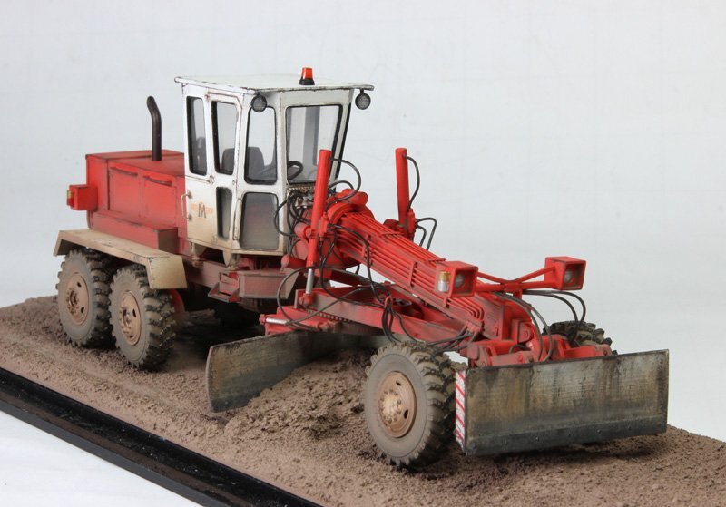 В масштабе 1:43 коллекционная модель грейдера займёт 22 см. Но так как модель поставляется с декоративным основанием, то места понадобится еще больше. Всего в ассортименте 20 артикулов. Разные цвета и разные комбинации цветов. Все, в которых можно встретить эту знаковую машину. А грейдер, действительно, культовый. Со времён СССР трудится на дорогах. Это не игрушка. Это дорогая коллекционная модель. Год работы мастерской по запуску изделия и неделя работы мастера над каждым экземпляром. Посмотреть модели и цены на сайте Моделстрой