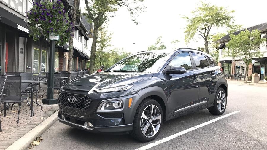 Первый взгляд совершенно новый Hyundai Kona в lime green заставил меня дважды посмотреть, было ли то, что я видел, действительно реально.Этот известково-зеленый субкомпактный кроссовер имел так много обшивки кузова над колесными арками и крыльями, что он вызвал большое уродство, известное как Pontiac Aztek. Но скоро-во время более длинного взгляда без контрастных двухцветных цветов, это выглядело как небольшой кроссовер, удобный для городских поручений, пригородного забоя и выходных. Не слишком пугающе, не слишком искусственно бездорожье наводит. Thunder-gray body появился более унифицированным в дизайне и менее похож на глупую попытку выделиться в классе, полном причуд, таких как Kia Soul, Toyota C-HR, Ford EcoSport и Nissan Kicks. К концу нашей недели мне очень понравился этот милый утес, что странно из-за однородной природы маленьких кроссоверов, которые были сбиты автопроизводителями со скоростью, которая заставила бы кроликов краснеть. Мы проехали больше миль, чем обычно в горо