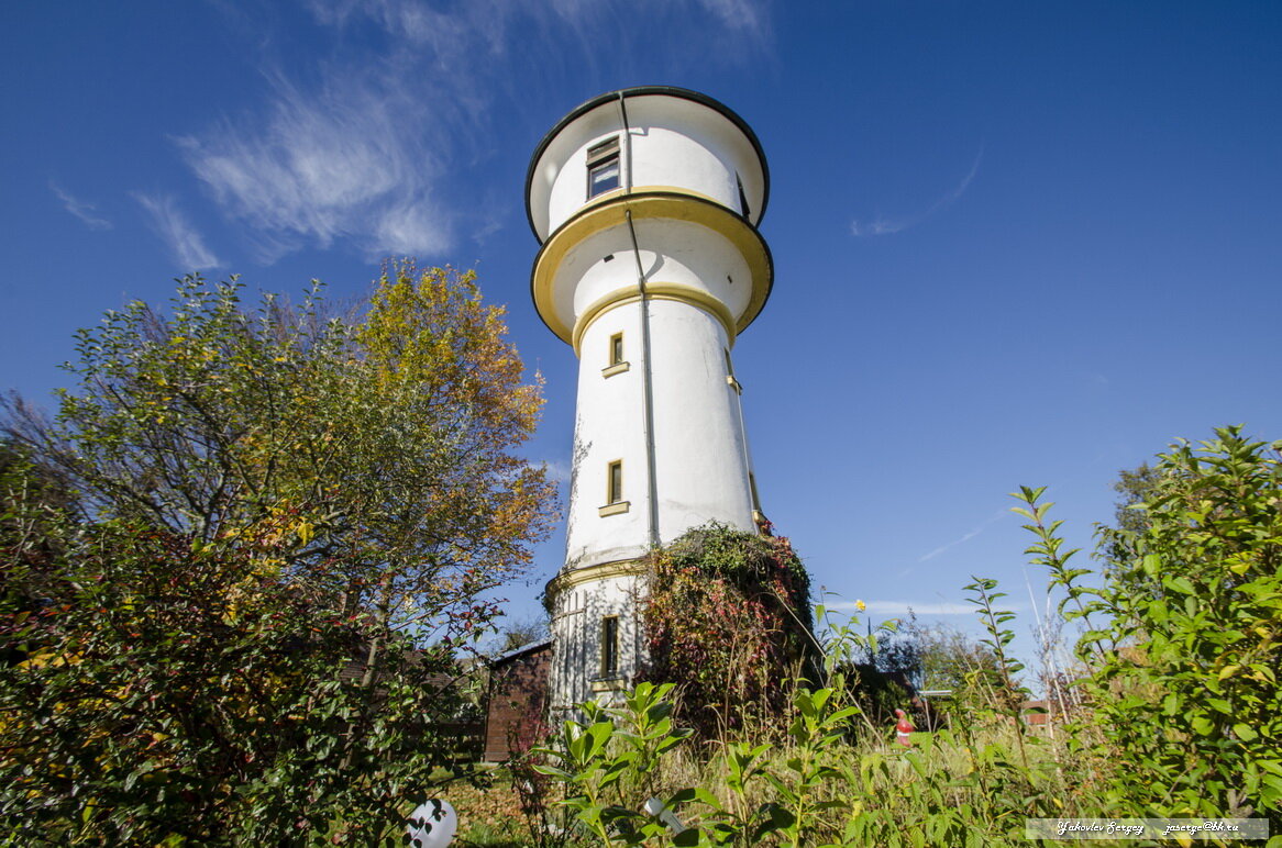 Небольшой баварский городок. В России тоже были такие опыты. В Томске есть дом - водонапорка, но выглядит он похуже. В Екатеринбурге есть башня-музей. Но самое симпатичное, что я видел, все-таки немецкая башня.