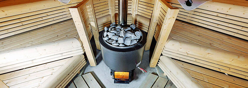 Камни могут располагаться как снаружи топки, в открытом (решетчатая корзина) или закрытом с трех сторон коробе, а могут находиться внутри печи. Есть и комбинированные варианты – внутренняя, закрытая каменка, с устройством подачи воды и выхода пара, и наружная, куда загружается каменная масса. Количество камней варьируется в зависимости от конструктива и мощности печи, это может быть и пара десятков килограмм, а может быть и сотня.