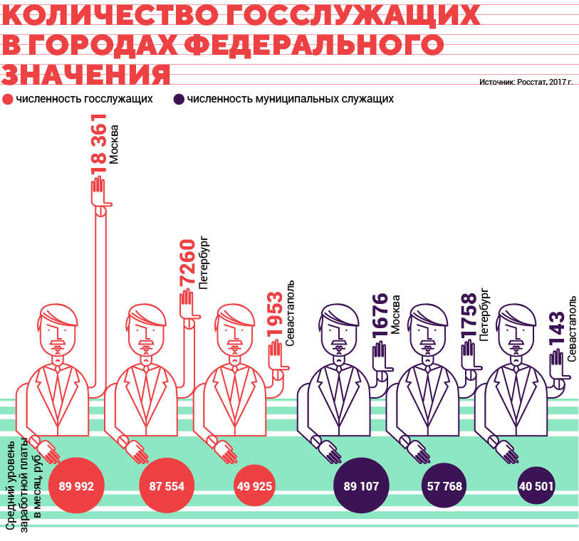 Мы сравнили зарплаты госслужащих в Москве, Санкт-Петербурге и Севастополе