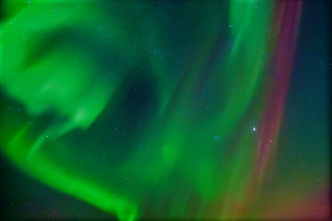 ОТКУДА БЕРЕТСЯ СЕВЕРНОЕ СИЯНИЕ Северное сияние – это тысячи огоньков, зажигающихся на небе в темные ночи. Огни бывают самых разных форм и цветов: синие, желтые, красные, зеленые. Темное небо окрашивается в яркие цвета и становится видно вокруг на многие километры как будто днем. Северное или полярное сияние уже тысячи лет очаровывает людей Северное сияние, чем-то напоминает закат (только в ночное время), но может также воплощаться в виде спиралей или дуг. Ширина цветной ленты вполне может превышать 160 км, длина – 2500 км. Свечение вызвано взаимодействием верхних слоев атмосферы, обладающей магнитосферой, с заряженными частицами солнечного ветра. Человеческим языком и очень упрощенно это значит, что Солнце выбрасывает в космос миллионы тонн частиц, через 2–5 дней они долетают до верхних слоев атмосферы Земли, где азот и кислород так рады встрече, что аж светятся от возбуждения. Свечения происходят в районе магнитных полюсов Земли. К счастью, магнитные полюса не совпадают с географ