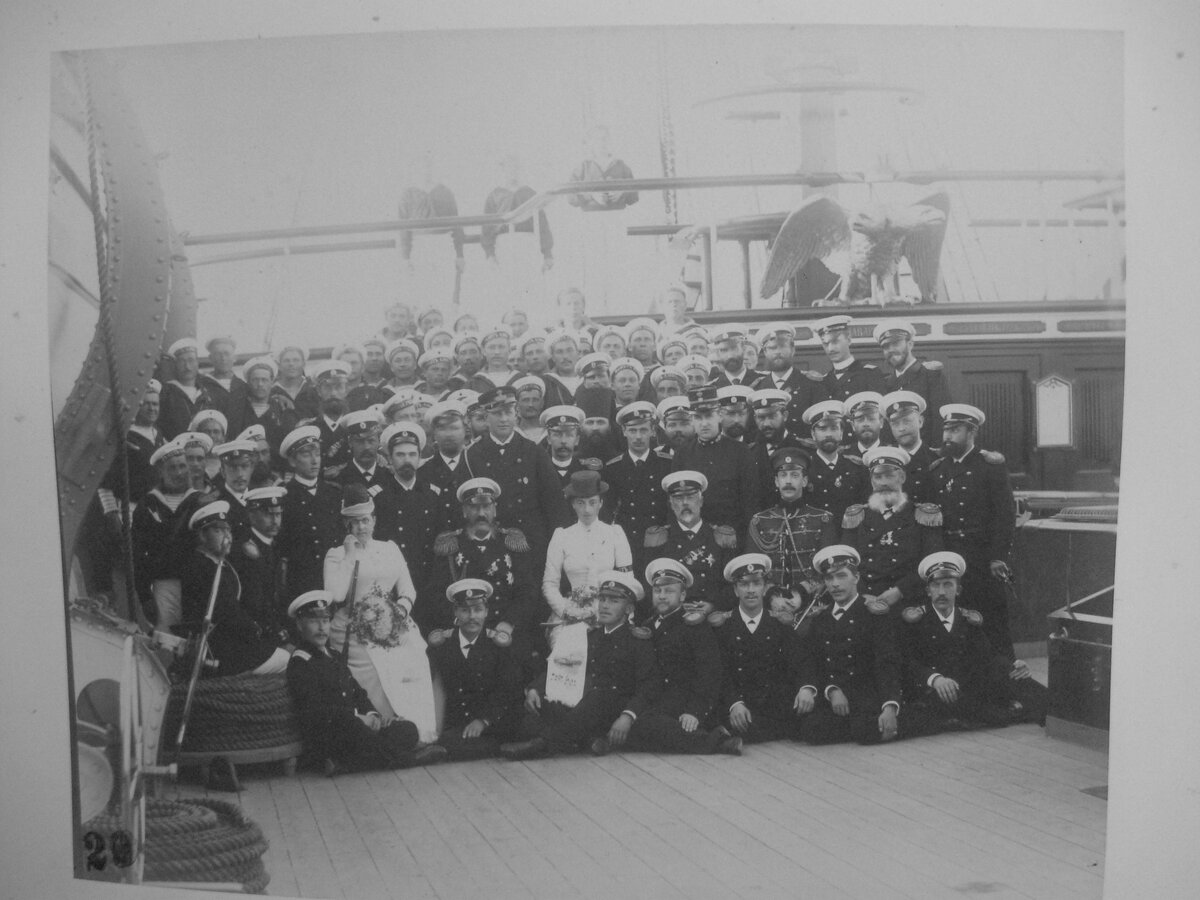Броненосный крейсер "Память Азова" во время плавания на дальний восток. С присутствующим на борту цесаревичем Николаем Александровичем.