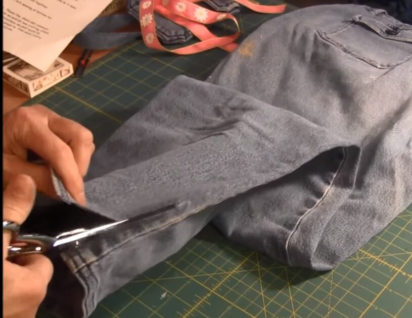 У вас есть старые джинсы или шорты, которые вы собираетесь выбросить? Стоп! Вы можете превратить их в симпатичную маленькую сумочку. Такая сумочка будет удобна на прогулке или вы можете подарить небольшую джинсовую сумочку своей маленькой дочери. Деньги, блеск для губ, ключи и телефон – все поместится в маленькой, но вместительной сумочке. Этот простой в использовании мастер-класс покажет вам, как сшить небольшую симпатичную сумочку с использованием старой одежды. Вы будете удивлены, но для пошива вам не потребуются особые навыки шитья. Справится даже начинающая мастерица. Для работы вам понадобятся только старые джинсы и небольшой отрезок ленты для того, чтобы сделать ручку на сумочке. Сшивать сумочку лучше на швейной машинке. Так швы будут смотреться аккуратнее. Возьмите свои старые джинсы. Нам понадобится та их часть, где есть большой карман. Обычно удобный карман для переделки располагается сзади. Благодаря плотному шву карман идеально подходит для переделки. Разрезаем штанину дж
