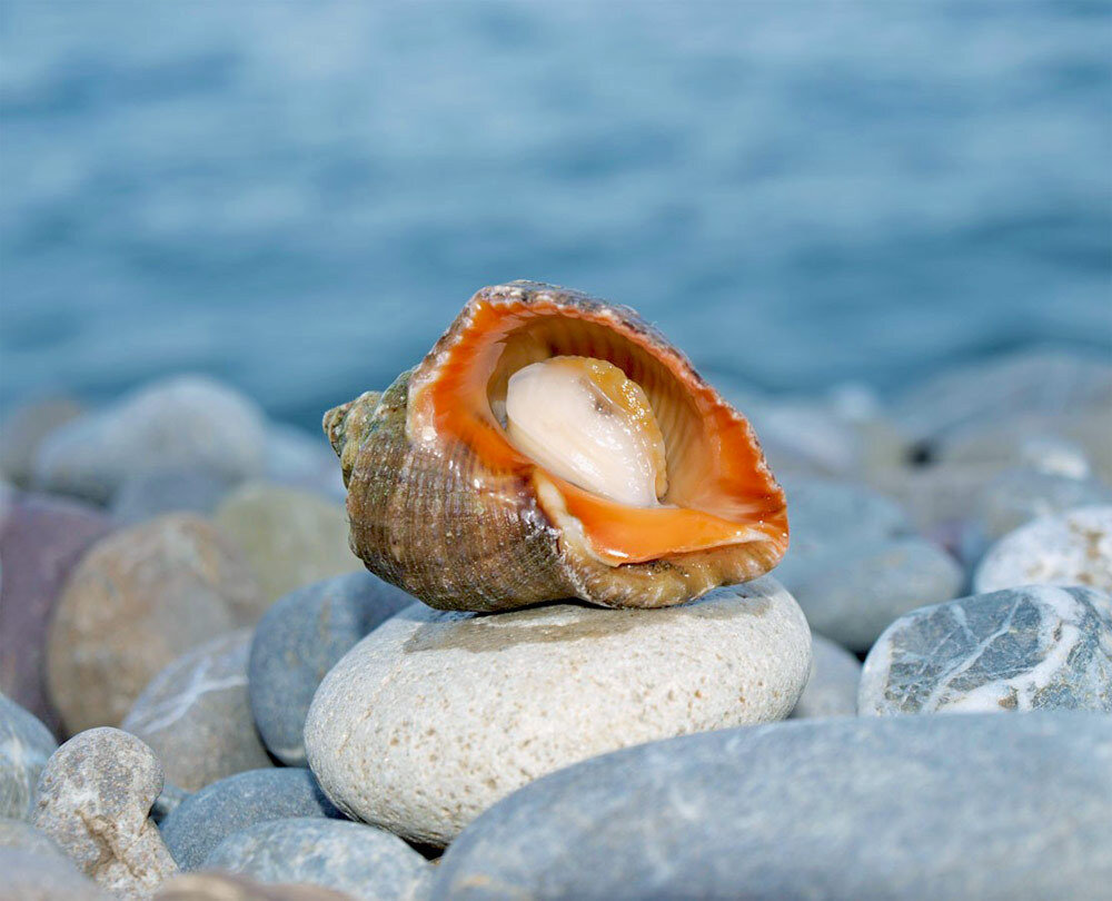 РАПАН Рапан - это брюхоногий хищный моллюск, который носит на себе красивую, завитую раковину. Их еще называют морской улиткой. В природе существует лишь 4 разновидности рапан: Дальневосточный рапан Жилковатый рапан Рапан Томаса Черноморский рапан Именно в ней, все мы в детстве слушали звук моря. Питаются они устрицами и моллюсками. У рапан очень развита нога и язык- сверло. Именно своим языком они просверливают своей добыче ракушки. После чего съедают моллюсков. По этой причине, они практический уничтожили популяцию моллюсков и устриц по всему черноморскому побережью. Польза от рапан гораздо выше, чем от других моллюсков, так как они питаются исключительно мясом. По структуре напоминают осьминогов. Но по вкусу не похожи ни на один моллюск. У них свой ярко выраженный вкус. В отличии от других моллюсков, употреблять рапан в не приготовленном виде не желательно. Не раскроется весь вкус. Готовить их надо быстро, чтоб мясо не стало жестким. Примерное время приготовления рапа