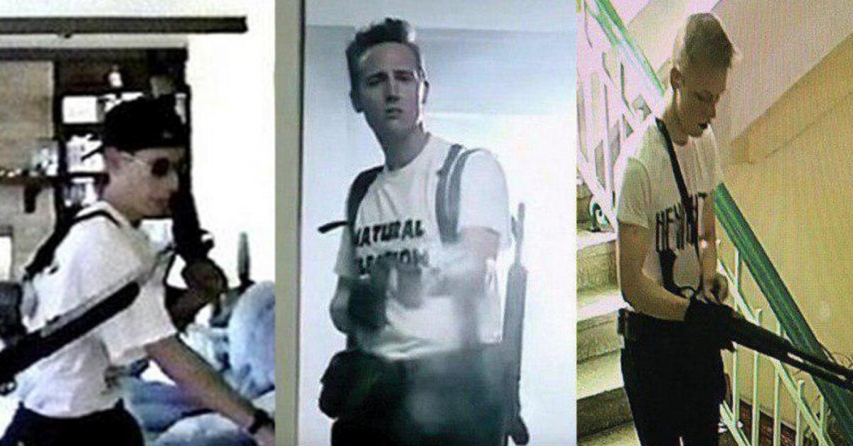 Видео бойни с камер наблюдения в Керченском политехническом университете показали в эфире «Россия 24». На кадрах видно, что Владислав Росляков предусмотрительно обходит вахтёра, проникая в здание учебного заведения через чёрный вход. Он несёт с собой рюкзак и сумку, где и хранит ружьё со взрывчаткой. Далее он поднимается по лестнице на второй этаж, где здоровается с одним из студентов: пока неясно, был ли это просто случайный знакомый или соучастник преступления. В следующей сцене Росляков идёт без сумки: камерам не удалось зафиксировать место, где он её оставил. Он спускается вниз, проходит мимо турникетов и садится на скамью, расположенную недалеко от буфета. Здесь Ростислав смотрит на телефон: видимо, рассчитывает время перемены в учебном заведении. После этого студент проникает в буфет, но выходит оттуда уже без рюкзака. Быстрым шагом он поднимается на второй этаж, попутно снимая верхнюю одежду, под которой видно футболку со словом «Ненависть». Вскоре нам показывают