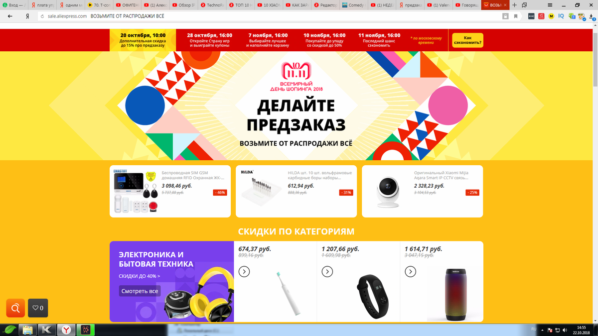 ДОпОлНитЕлЬнАя Скидка по предоплате к 11.11 Aliexpress . Как сделать предзаказ 20 числа стартовала акция к 11.11 . Осталось не так много дней, чтоб успеть сделать предзаказ до 11 числа. Что я хочу купить, реально скидка на рублей 500 минимум. Расскажу как сделать предзаказ к 11.11 .2018 Как можно перед 11.11 хорошо сэкономить на алиэкспресс .Хорошие скидки на телевизоры . Удачных покупок, подписывайтесь на канал в ютубе ,буду рад очень : ► YouTube ►► Ссылка на страничку делай предзаказ ► http://got.by/2turb0 ►►Помощник для Алиэкспресс ► Алипрайс , узнать завышена цена или нет. Браузер расширения : ► http://www.aliprice.com/go.php?z=AfRxJEHnLp&ext=1 ►► Ссылка на телевизоры,доставка бесплатная с Москвы ► http://got.by/2tuvvi