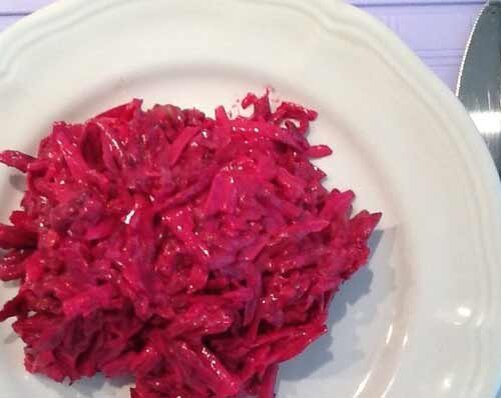 Салат свекла с сыром и чесноком пошаговый рецепт приготовления Ингредиенты: · свекла сырая - 400 грамм; · твердый сыр - сто грамм; · грецкие орешки - пол стаканчика; · майонез - 4- 5 ст. л.; · чеснок - три дольки; · соль - на свой вкус. ПРИГОТОВЛЕНИЕ: 1. Итак, приступим! Начнём со свеклы. Отвариваем её до готовности. 2. Затем чистим от кожицы и пропускаем в крупную тёрку. 3. Далее берем твердый сыр и так же пропускаем в крупную тёрку. 4. Потом берем чищеные орешки и мелко их порубим. 5. Затем берем чеснок, чистим его от шелухи и давим в пресс. 6. А теперь соединяем и перемешиваем все ингредиенты, солим и заправляем майонезом. 7. Вот и всё. Наш салат готов. Выставляем на стол и угощаемся. Приятного Вам аппетита!