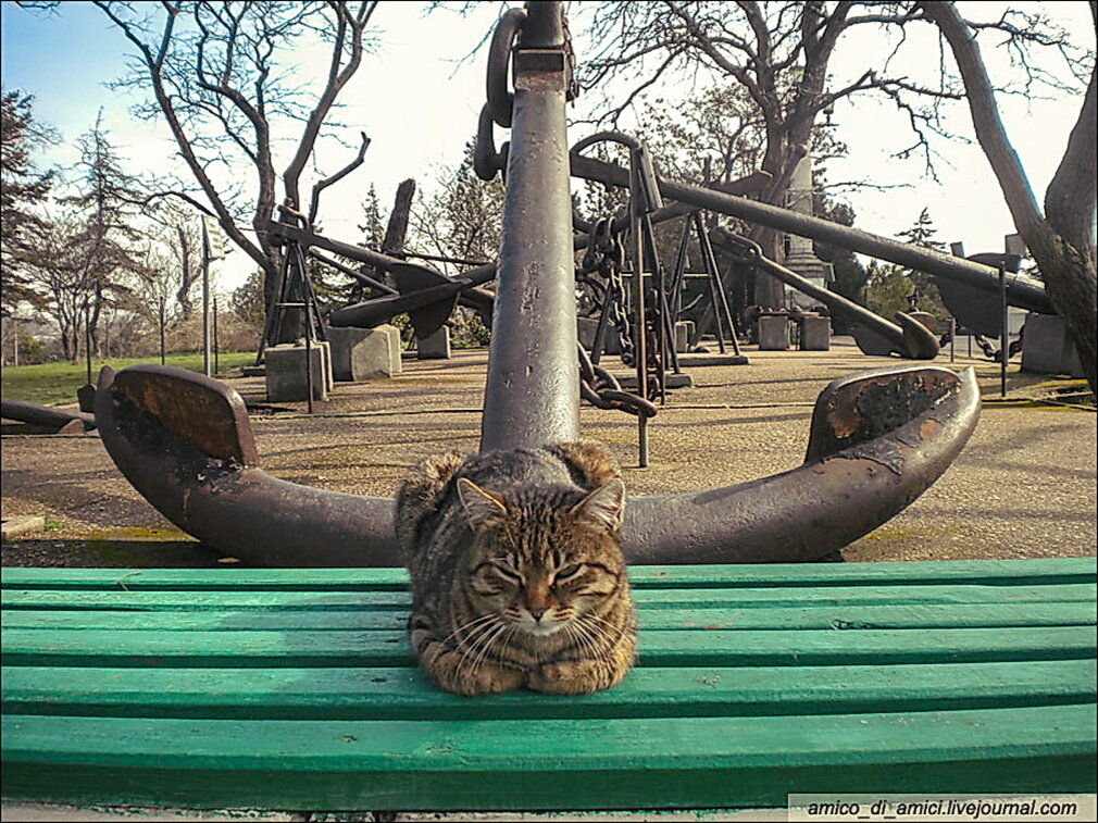 Эти снимки я сделал вчера в своём Севастополе на площадке возле Панорамы, где выставлены старинные российские и зарубежные якоря. О размерах их можно судить по этому фото: