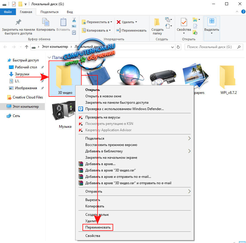 Здравствуй уважаемый посетитель! Если вы хотите знать, как можно сделать папку без названия, то тогда вам сюда в этом уроке я подробно и пошагово расскажу вам, как сделать папку без названия. И так чтобы убрать название с нужной вам папки, вам нужно навести курсор мыши на ту папку, с которой хотите удалить название папки, затем один раз нажать левую кнопку мыши, после чего ваша папку будет выделена. Теперь не отводя курсора мыши от папки вам нужно один раз нажать правую кнопку мыши, после чего раскроется контекстное меню для выборной папки, в этом контекстном меню вам нужно выбрать пункт «Переименовать». Когда вы выберите пункт «Переименовать» называние вашей папки будет выделена.