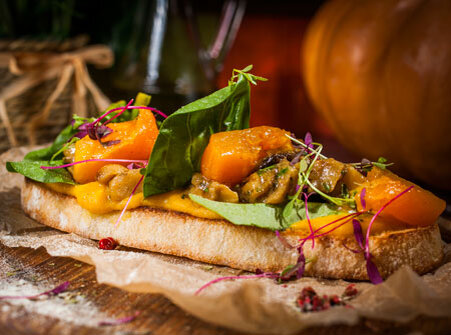 Что приготовить на Хэллоуин? Брускетта с тыквенным кремом и белыми грибами