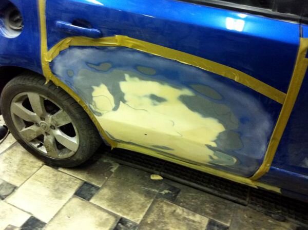 Немедленная покраска кузова автомобиля проводится поверх уже существующего покрытия только тогда, если оно не имеет отслоений, значительно поврежденных участков. В другом случае старая краска механическим методом снимается в подготовке к шпаклевочным работам. Этот этап необходим для маскировки вмятин, царапин, других дефектов.